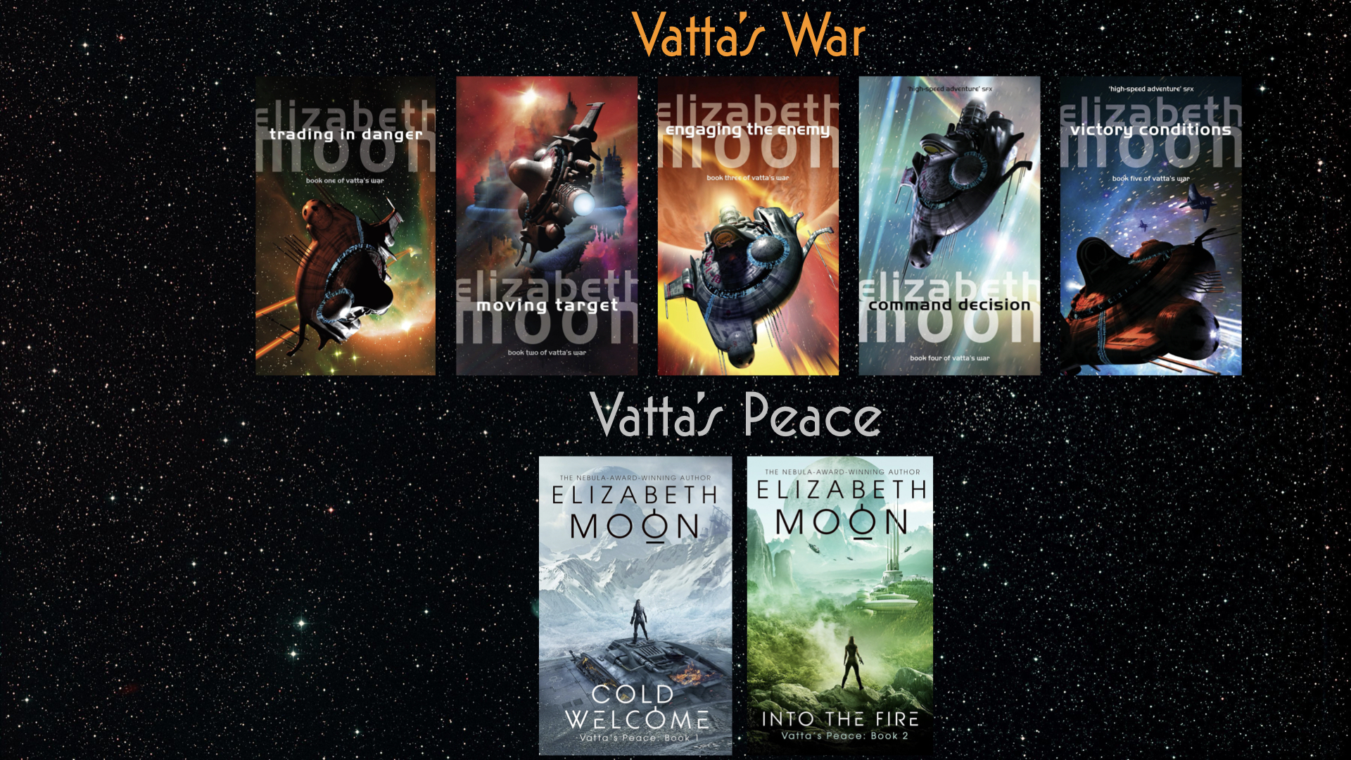- All the books in Elizabeth Moon’s Vatta’s War and Vatta’s Peace’ series (most of them where on sale, honest);