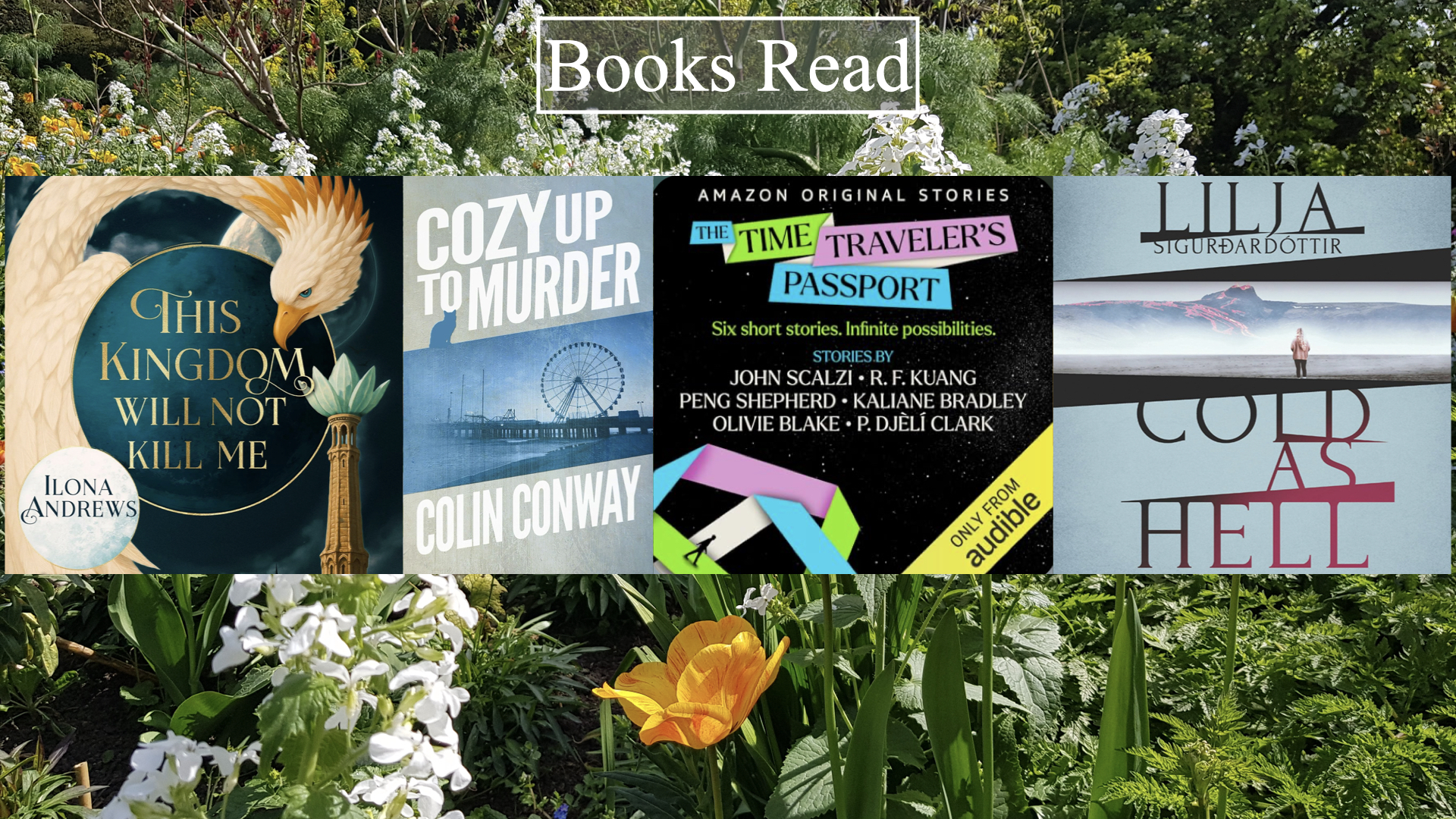 Another good reading week. I finished a long fantasy novel from Ilona Andrews, wolfed down an exceptional collection of time travel short stories, cleared my palette with a Cozy Mystery and started an Icelandic crime series.