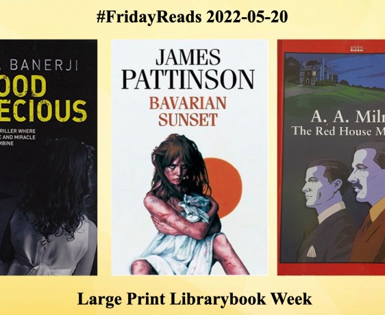 #FridayReads 2022-05-20 – Large Print Librarybooks Week – ‘Blood Precious’, ‘Bavarian Sunset’ and ‘The Red House Mystery’